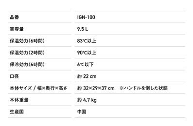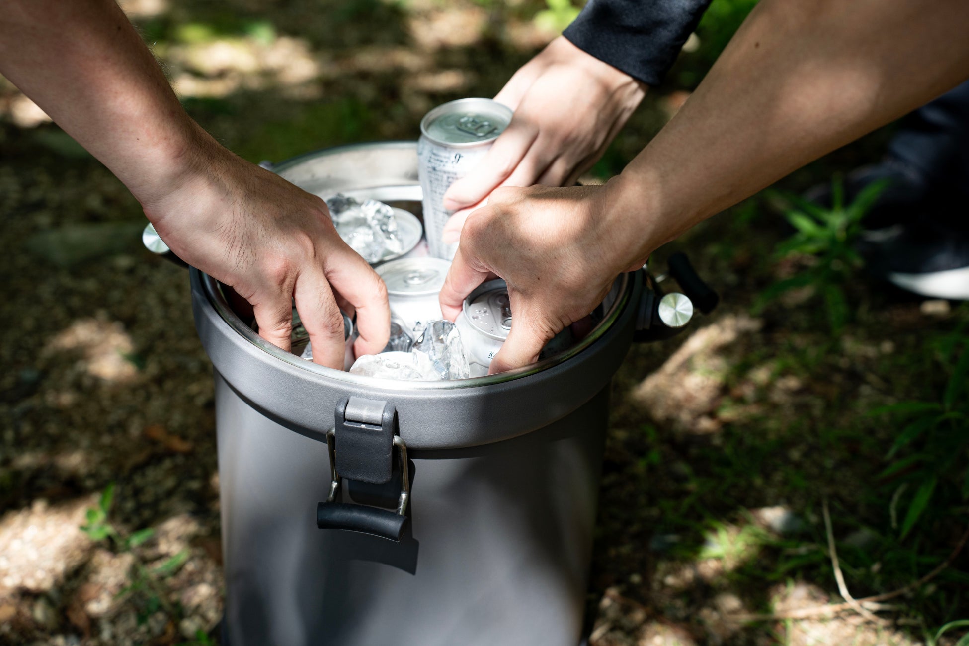 『クーラーバケット IGN-100』は、魔法瓶構造で約7日間も氷が残る保冷力を持ち、約10Lの大容量でアイスペールやドリンク・食料保存など、1~2人でのキャンプやスポーツ・アウトドアといった様々なシーンでお使いいただけます。
