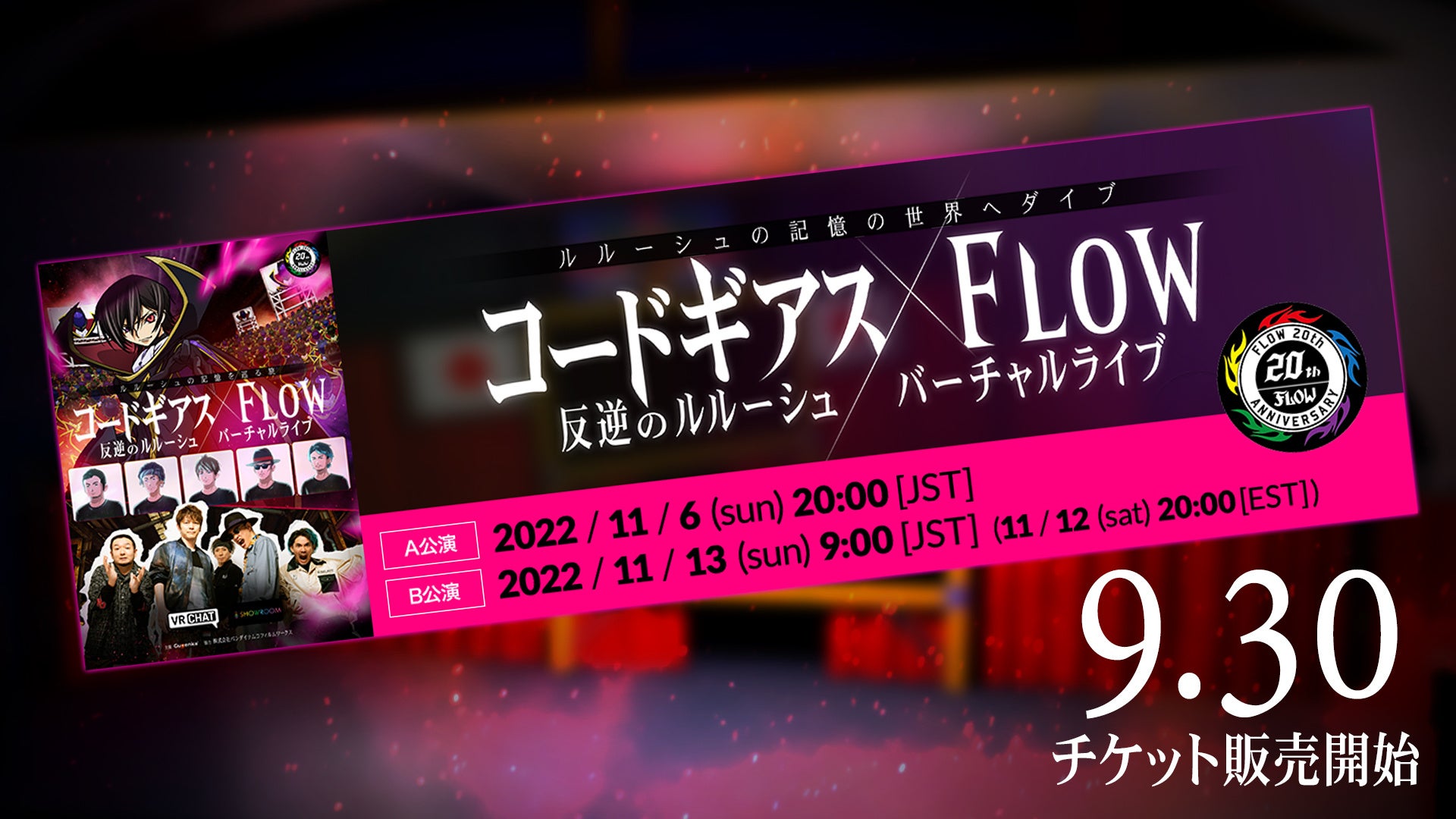 株式会社Gugenka(代表取締役CEO 三上昌史)は、「コードギアス 反逆のルルーシュ×FLOW バーチャルライブ」のチケット販売を本日2022年9月30日(金)より開始することをお知らせいたします。