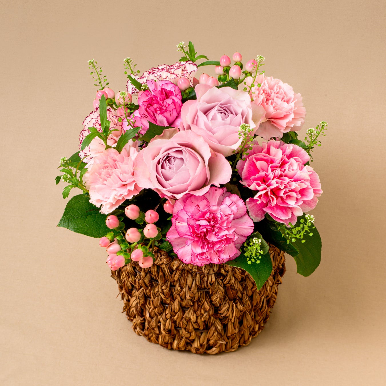 華麗で気品あふれるローズピンクのアレンジメント。特別な日にふさわしい贈り物です。