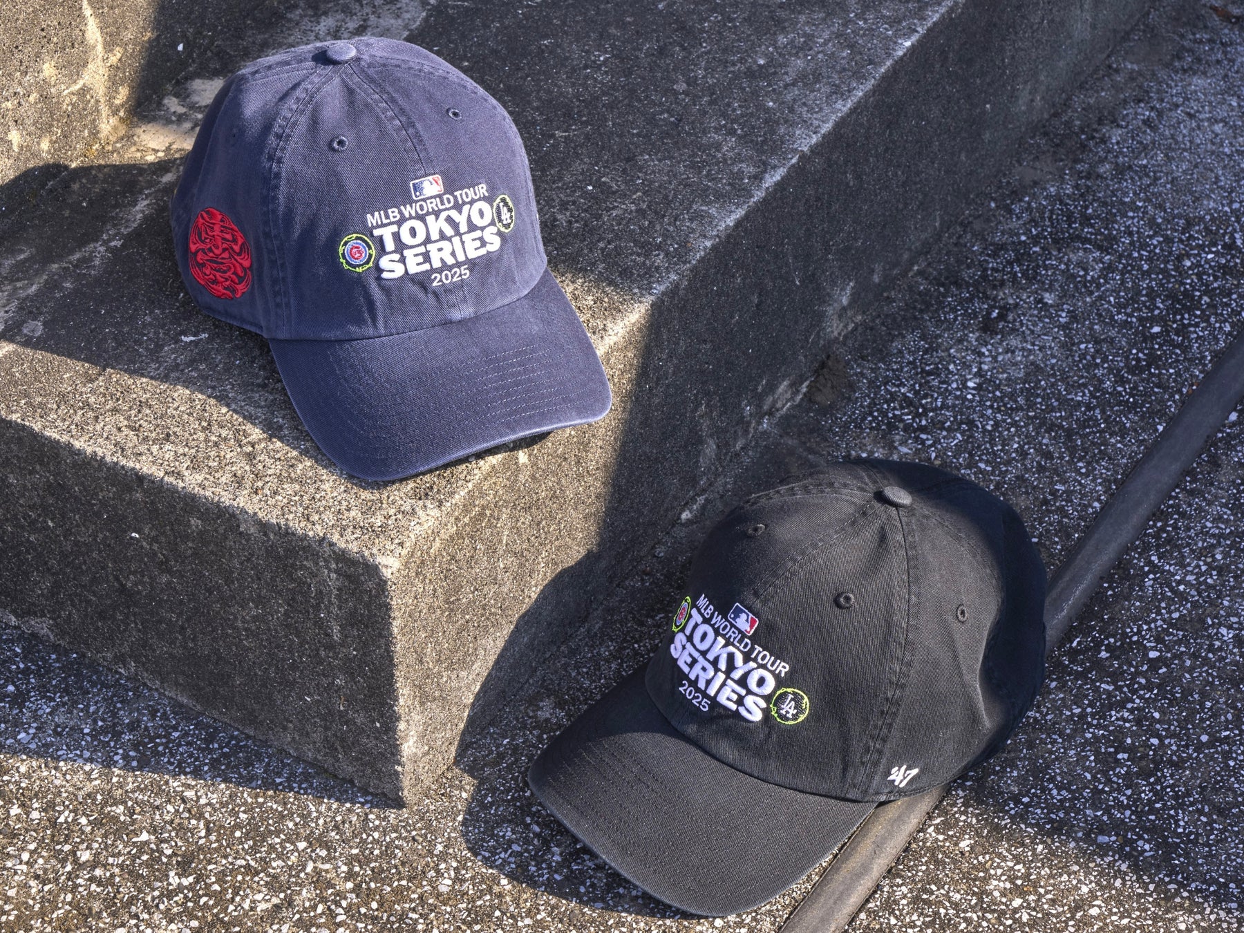 MLB Tokyo Seriesのオフィシャル大会ロゴキャップが5型登場。なかでも、サイドに大会限定の赤い「花文字」が刺繍されたキャップは、’47直営店限定のプレミアキャップ。定番のファンキャップである<’47 CLEAN UP>から、かっちりとしたシルエットの<’47 MVP>、そして日本初登場のモデル<’47 TRUCKER>、もちろんキッズも展開。世界が注目するこの瞬間の思い出をキャップに込めてお届けします。