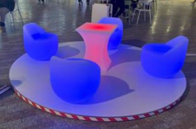 広さ約6,000平方メートルの広場東側には、高さ約4メートルのシンボリックなプレゼントボックス型モニュメントを今年も設置。さらに、来街者の憩いの場として、常設のイスとテーブルに加え、光るイスとテーブルを広場内3カ所に設置し、上質な空間演出を行います。