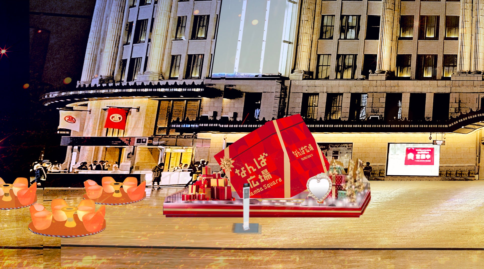 内容 :高さ約4メートルの巨大なプレゼントボックス、光るイスとテーブル、ツリーやミニプレゼントボックスなどで広場を装飾します。