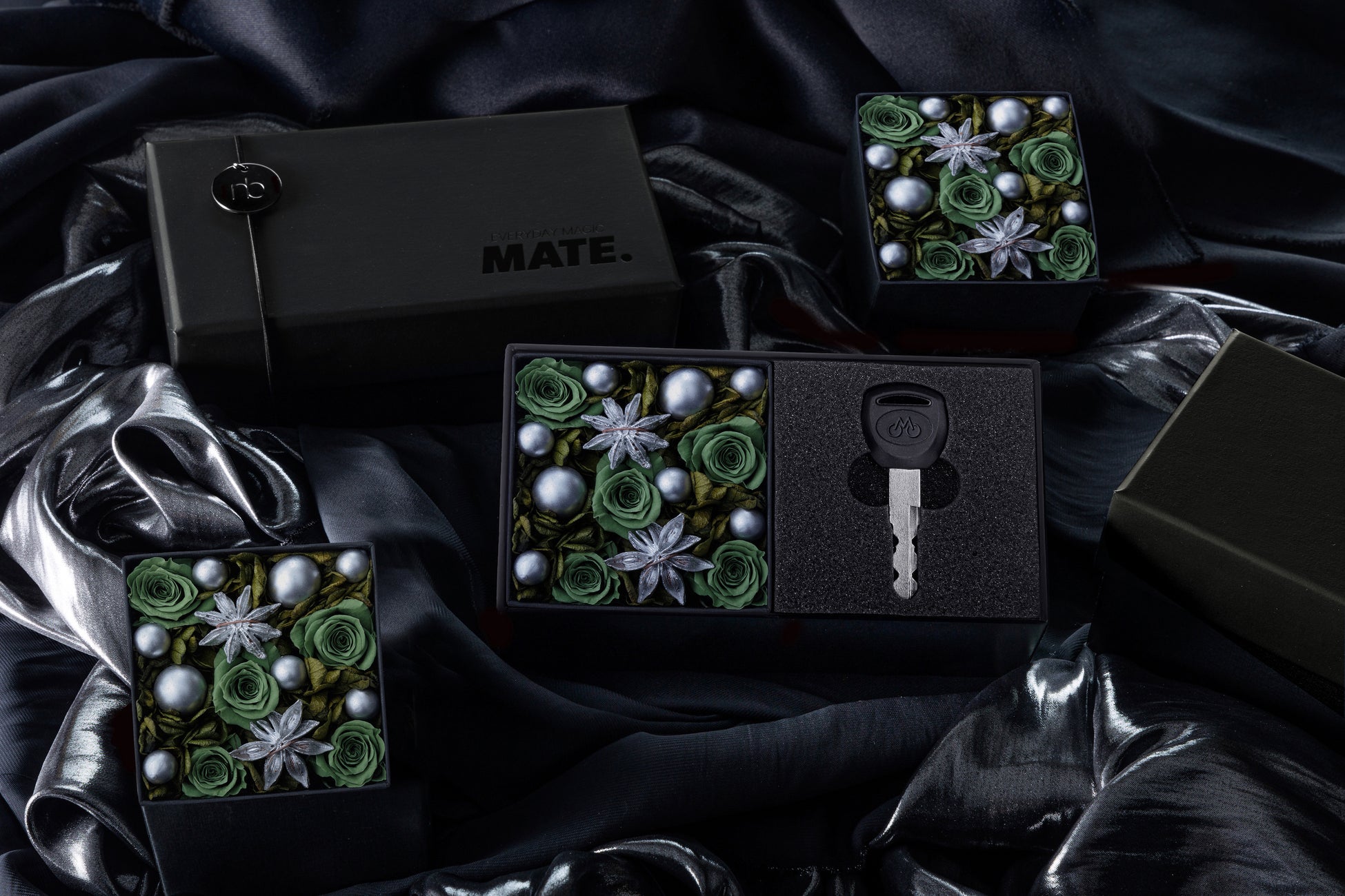 ニコライ バーグマン フラワーズ & デザインの北欧のテイストと日本のスタイルを組み合わせたシンプルで暖かみを感じるデザインに、MATE.BIKEの都会的でエッジの効いたイメージをミックスしたオリジナルデザインのプリザーブドフラワーボックスが完成しました。ホリデーシーズンを祝福するナチュラルなグリーンの花々と、華やかなでソリッドなシルバーのオーナメントが調和した、サステナブルな未来を想像させるMATE.BIKEでしか手に入れることのできない限定デザインです。