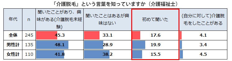 【「介護脱毛」を初めて聞いた 介護職と一般の方で約3倍の差】