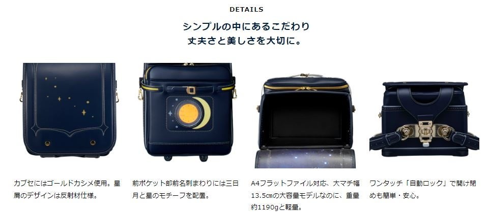 ランドセルの企画・販売を行う池田地球株式会社(本店:東京都港区:代表取締役 村尾光一)のオリジナルブランド『地球NASAランドセル®』より、きらめく月や星を随所にあしらった「スペースランド ムーン」が2色展開で新登場します。月や星のモチーフは薄暗い中で光が当たると反射して光るリフレクター機能も。宇宙という未知の存在を身近に感じながら、興味や関心を深めていただけるランドセルです。