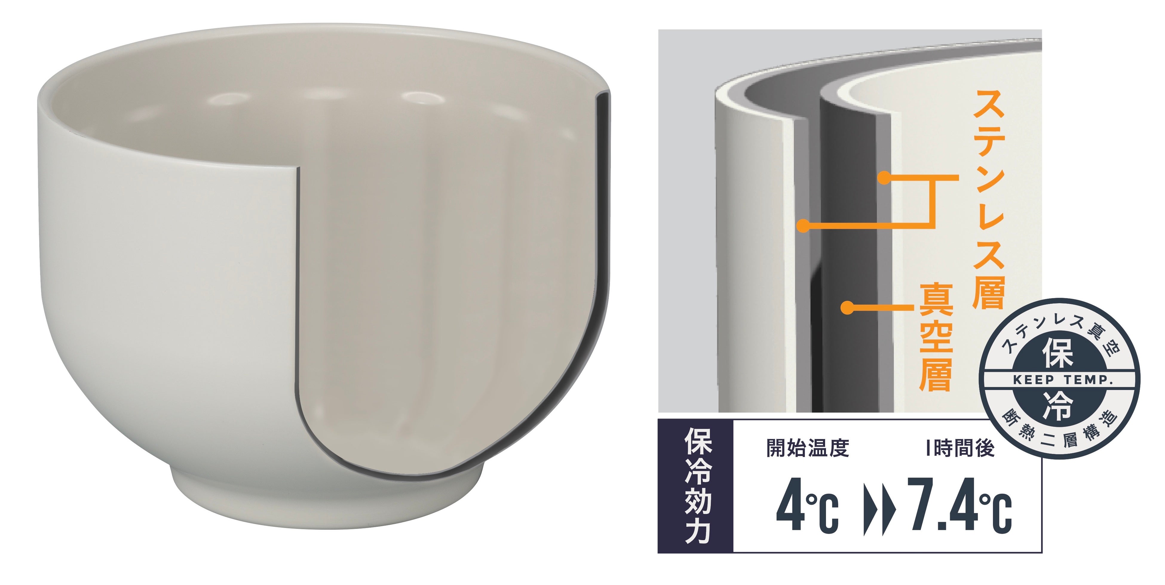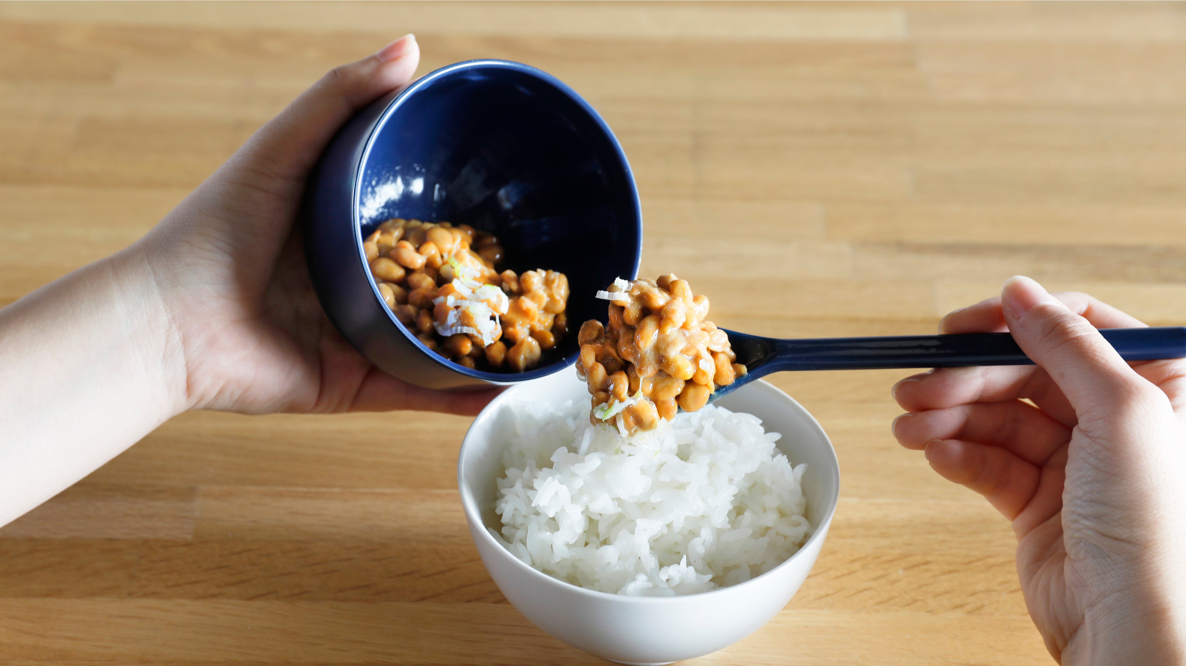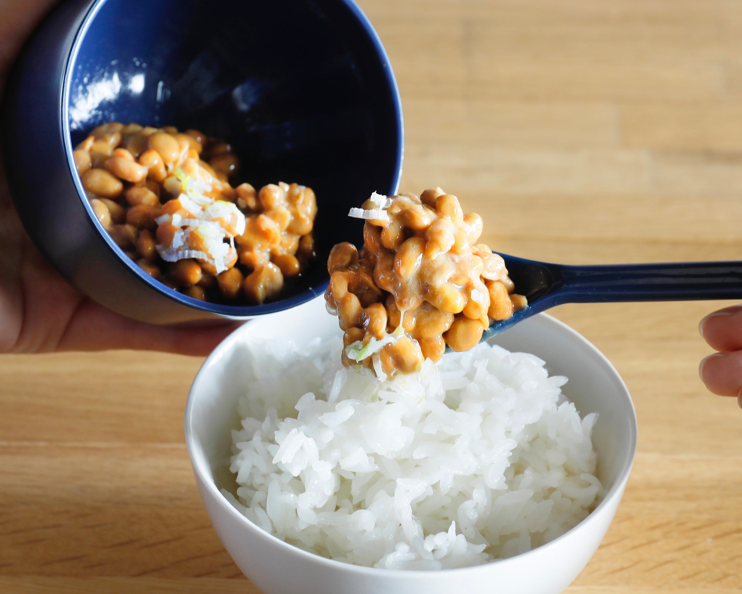 小鉢を持って混ぜる時も、手の熱を真空層が遮断するので、納豆に熱が伝わることなく混ぜられます。