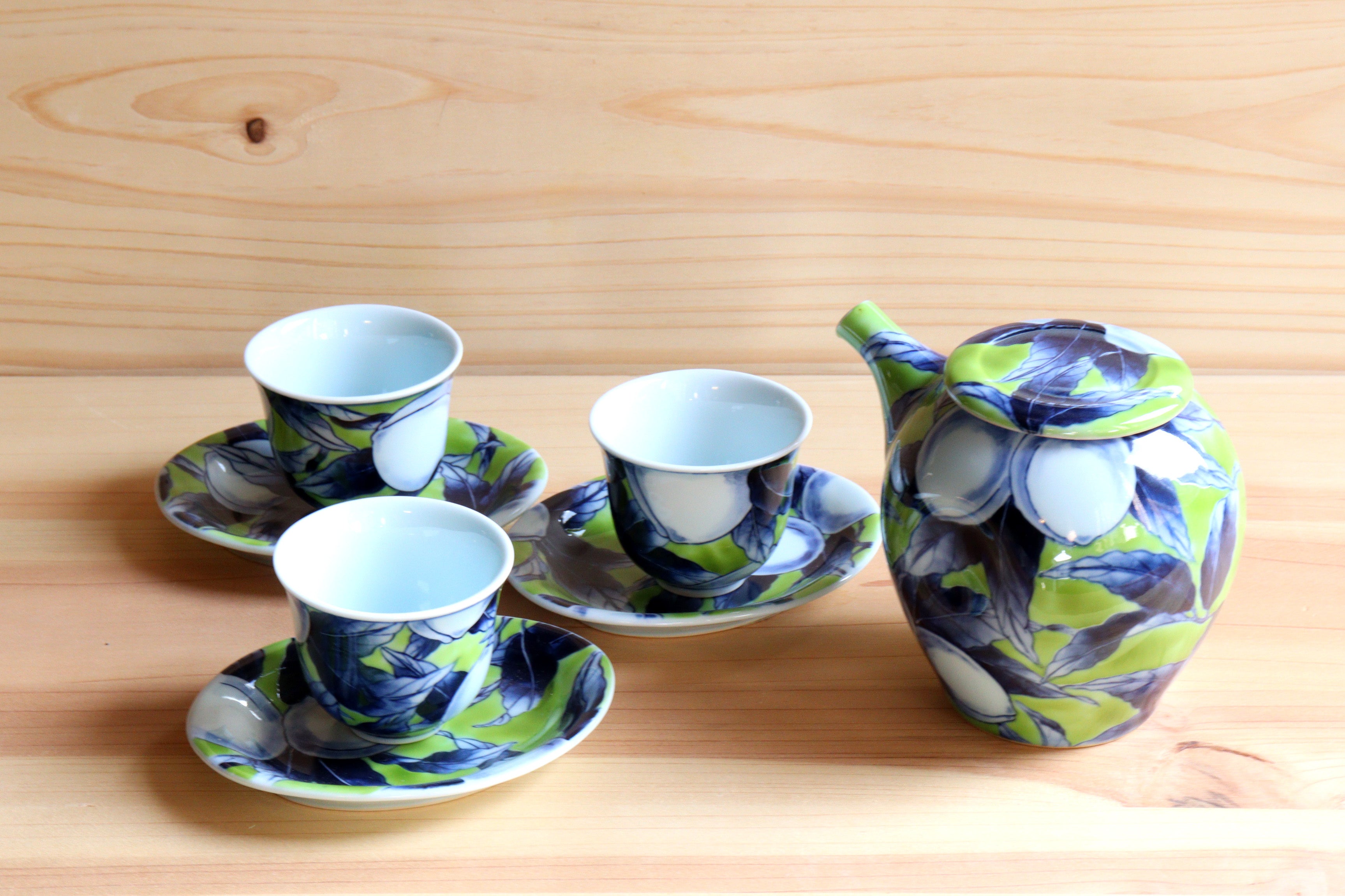 今回は、2つのシリーズの中から、テーブルに配するとテンションが上がり、晴れやかな時間が過ごせそうなティーセットや酒器セットを中心に、食事を彩るうつわを展示します。