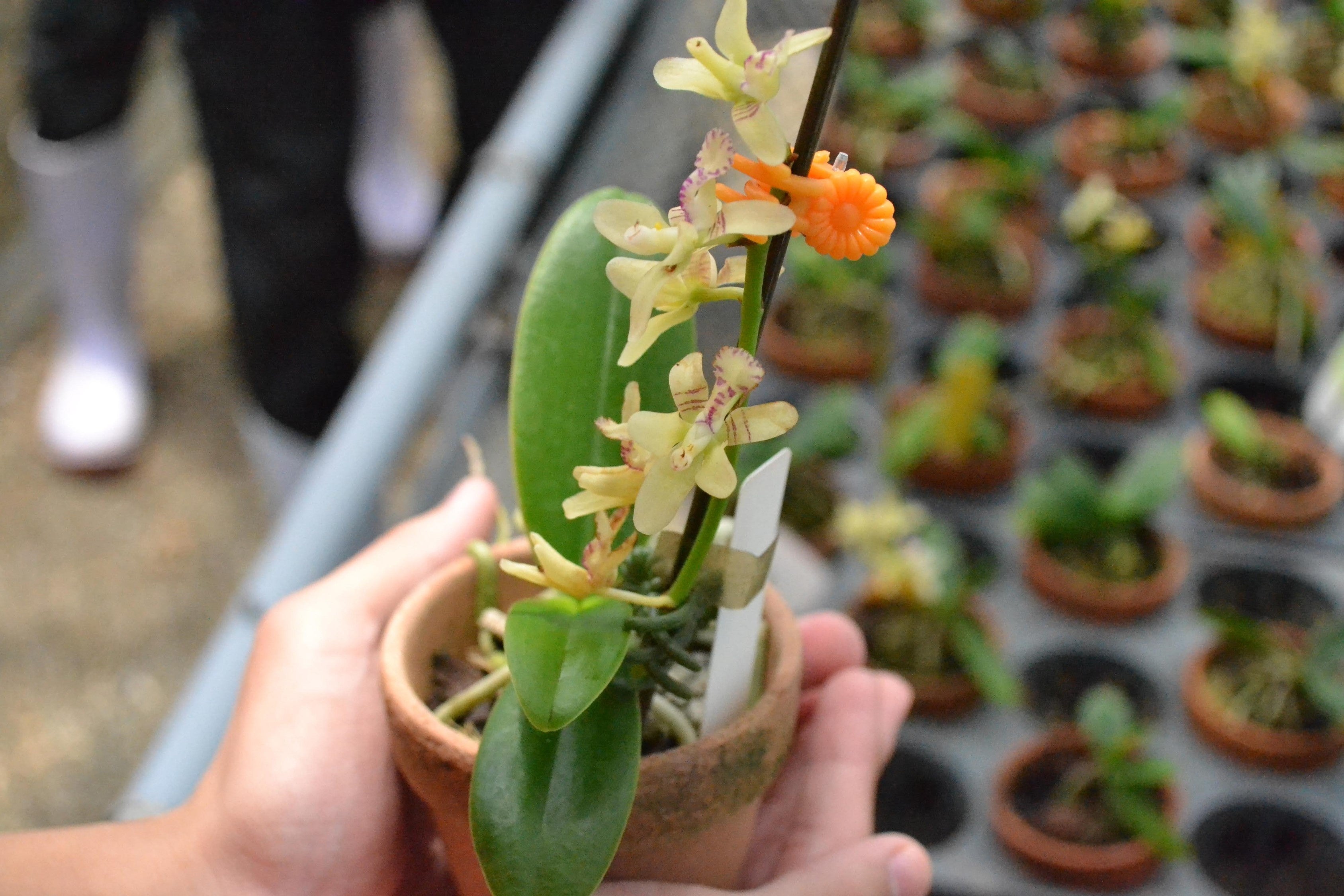 「ナゴラン」は、沖縄県名護市で発見された沖縄を代表する野生ランの1種です。北部農林高校園芸工学科では、この希少なナゴランの増殖・栽培に関する研究を行い、保全活動に取り組んでいます。