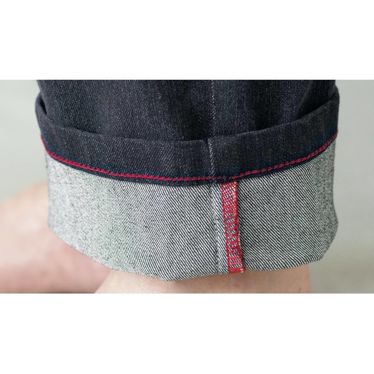 脇線と裾の赤色糸がアクセント(裏側のみ)