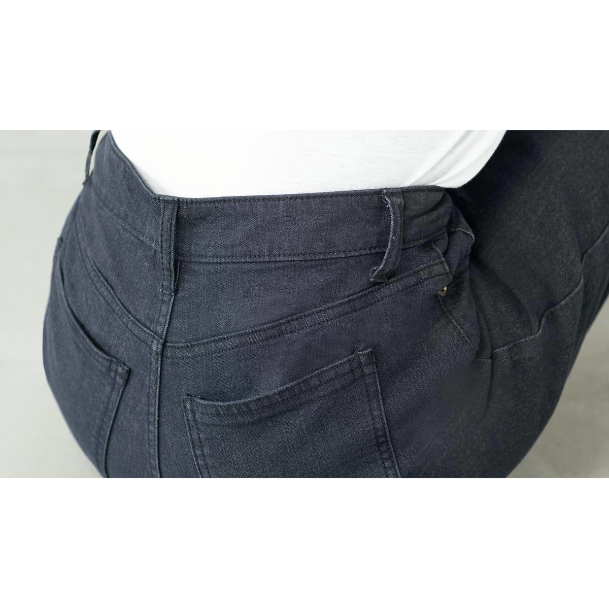 伸縮性のある生地だから、座り姿勢の時などの締め付け感を軽減