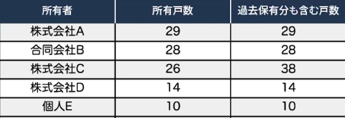 1. 最大29戸も保有する法人が存在。法人所有の「集中度」を可視化