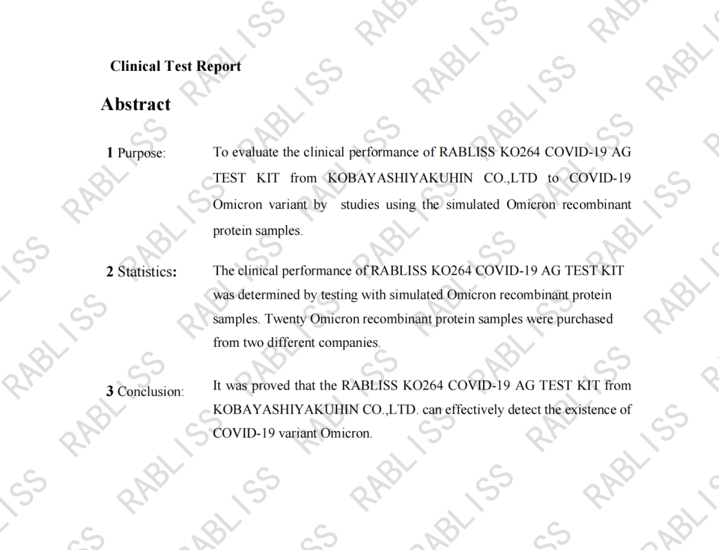 小林薬品 新型コロナウイルス抗原検査キット オミクロン株対応試験の結果について