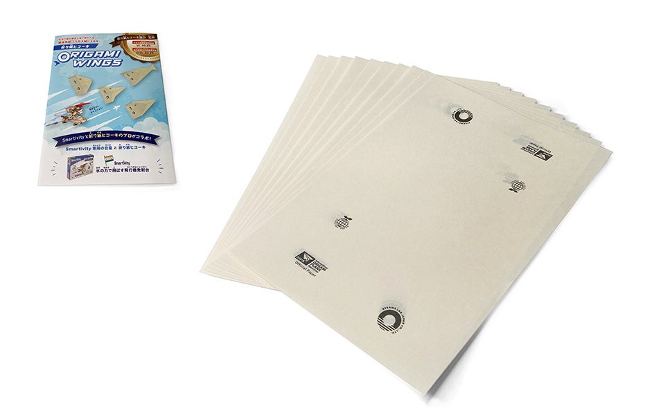 「ORIGAMI WINGS」とは、折り紙ヒコーキ作家で、 世界で1番滞空時間が長い紙ヒコーキの記録29.2秒のギネス保持者である戸田拓夫氏が主催する「折り紙ヒコーキ協会」の監修を基に開発された紙飛行機です。
