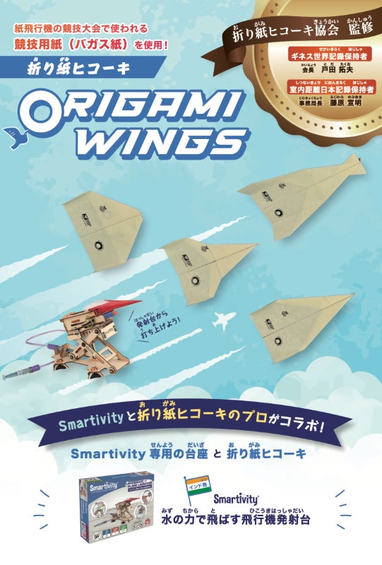 STEAMS LAB JAPANと戸田拓夫氏の主催する「折り紙ヒコーキ協会」のコラボレーションにより、弊社の取り扱うSTEAMトイ「Smartivity 水の力で飛ばす飛行機発射台」で使用できる紙飛行機を開発しました。