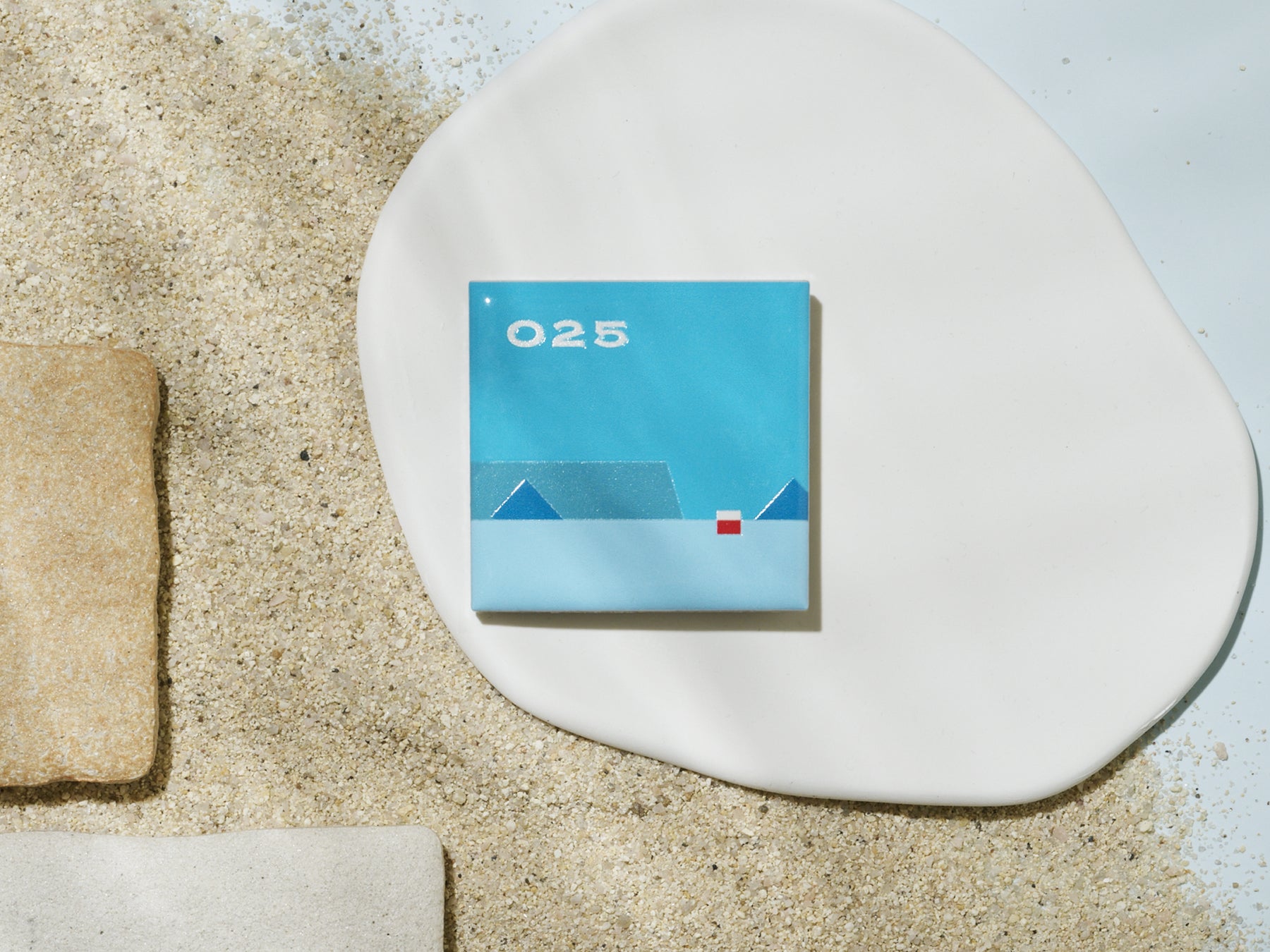 海の淡くやさしい水色をベースに、瀬戸内海らしいおむすび形やテーブル形の島々がポップに描かれているグラフィックデザインを立体化し、美濃焼の製造過程で生まれる廃材をアップサイクルしたタイルに一つひとつ丁寧にプリントしました。瀬戸内の風景や記憶をやさしく閉じ込めたマグネットは、光の当たり方や見る角度によって表情が変わります。日常の風景に彩りを添える小さなアートとして、長く大切にしていただける特別なアイテムです。
