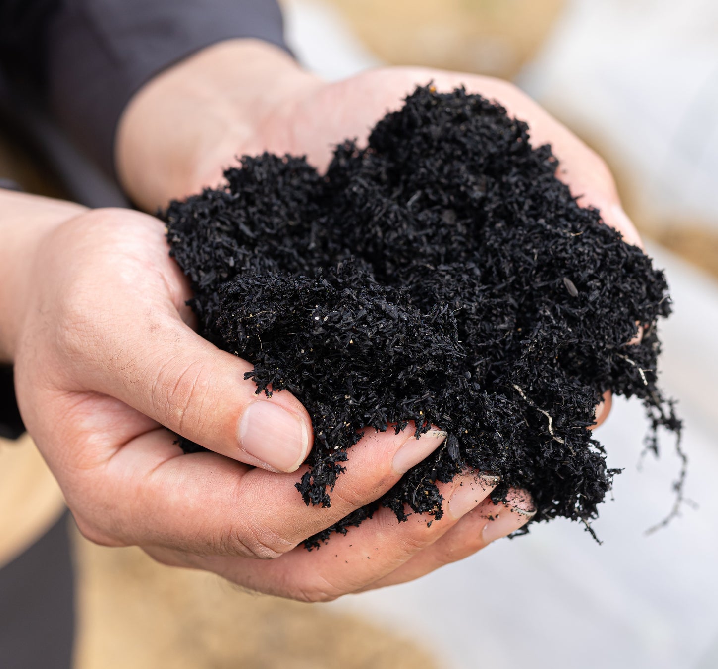TOWING独自のバイオ炭前処理技術と微生物培養技術に、国立研究開発法人 農業・食品産業技術総合研究機構(農研機構)の技術を融合させた革新的な農業資材。土壌の健康を促進し、化学肥料の使用を削減、有機転換を促します。さらに、作物の品質と収量の向上により、生産者の経営効率にも寄与。地域の未利用バイオマスのアップサイクルや、農地への炭素固定を通じてCO2の削減にも貢献します。