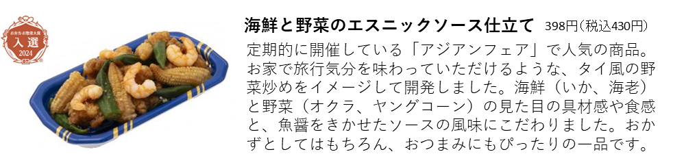 株式会社東急ストア(本社:東京都目⿊区)の2商品が、全国のスーパーマーケットや専門店、コンビニエンスストアがエントリーする「お弁当・お惣菜大賞2024」にて、入選いたしました。約15,000件の応募の中からの入選を記念し、2月1日(木)より、デリカ売場にて2商品を再販いたします。どちらもバイヤーがこだわって開発した商品です。ぜひこの機会にぜひご賞味ください。