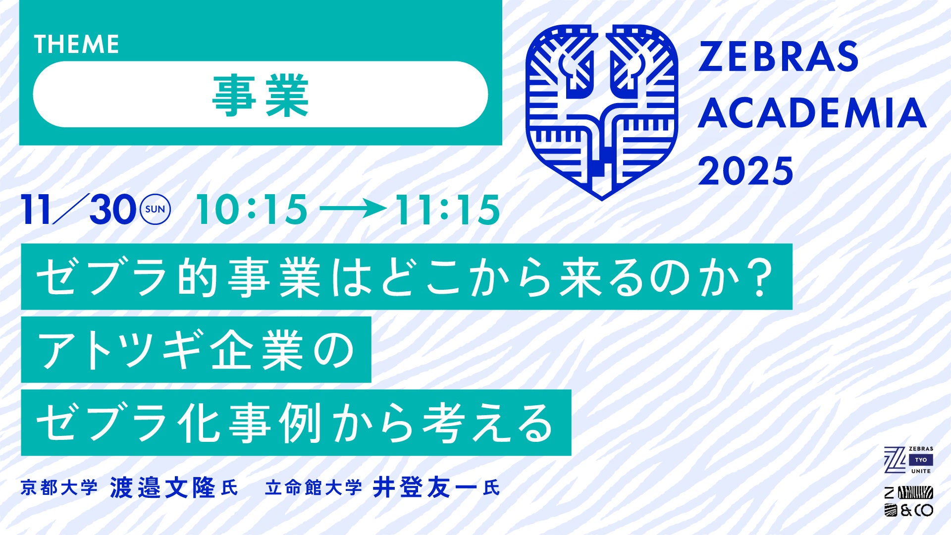 株式会社Zebras and Company(ヨミ:ゼブラ アンド カンパニー、本社:東京都港区麻布十番、代表取締役:阿座上陽平、田淵良敬、以下Z&C)は、2025年11月30日に開催する『ZEBRAS ACADEMIA 2025』の第2弾情報を公開いたします。