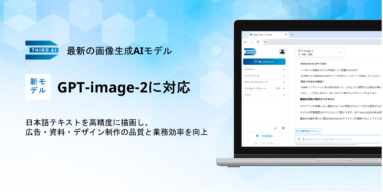「Third AI 生成AIソリューション」、最新画像生成モデル「GPT‑Image‑2」に対応 ~日本語テキストを高精度に描画し、広告・資料・デザイン制作の品質と業務効率を向上~