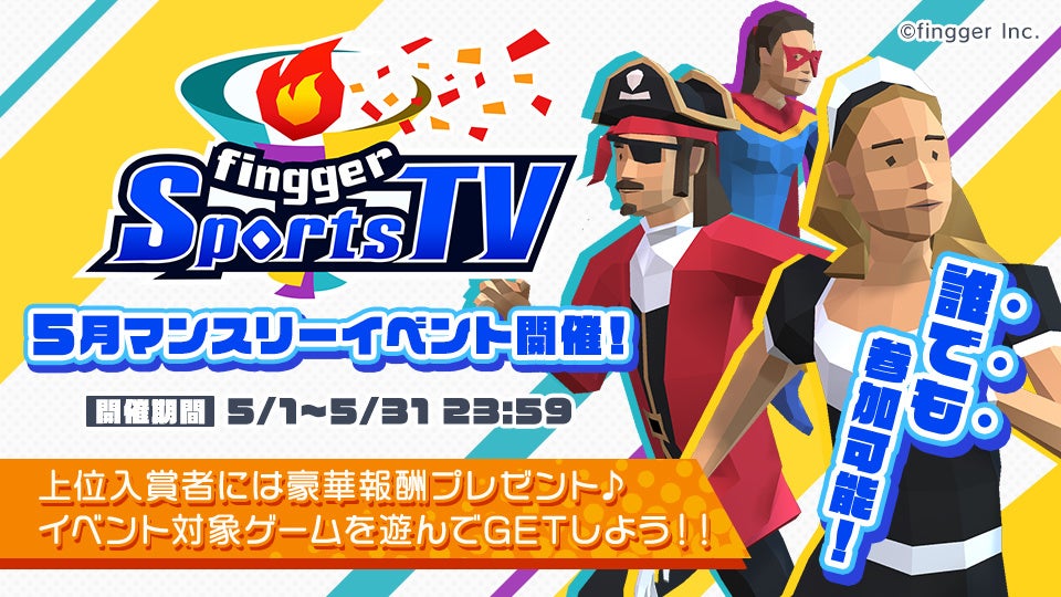 株式会社fingger(東京都品川区、代表取締役:吉江直人)は、2022年5月1日(日)より、『fingger Sports TV』にて「5月マンスリーイベント」を開催したことをお知らせいたします。