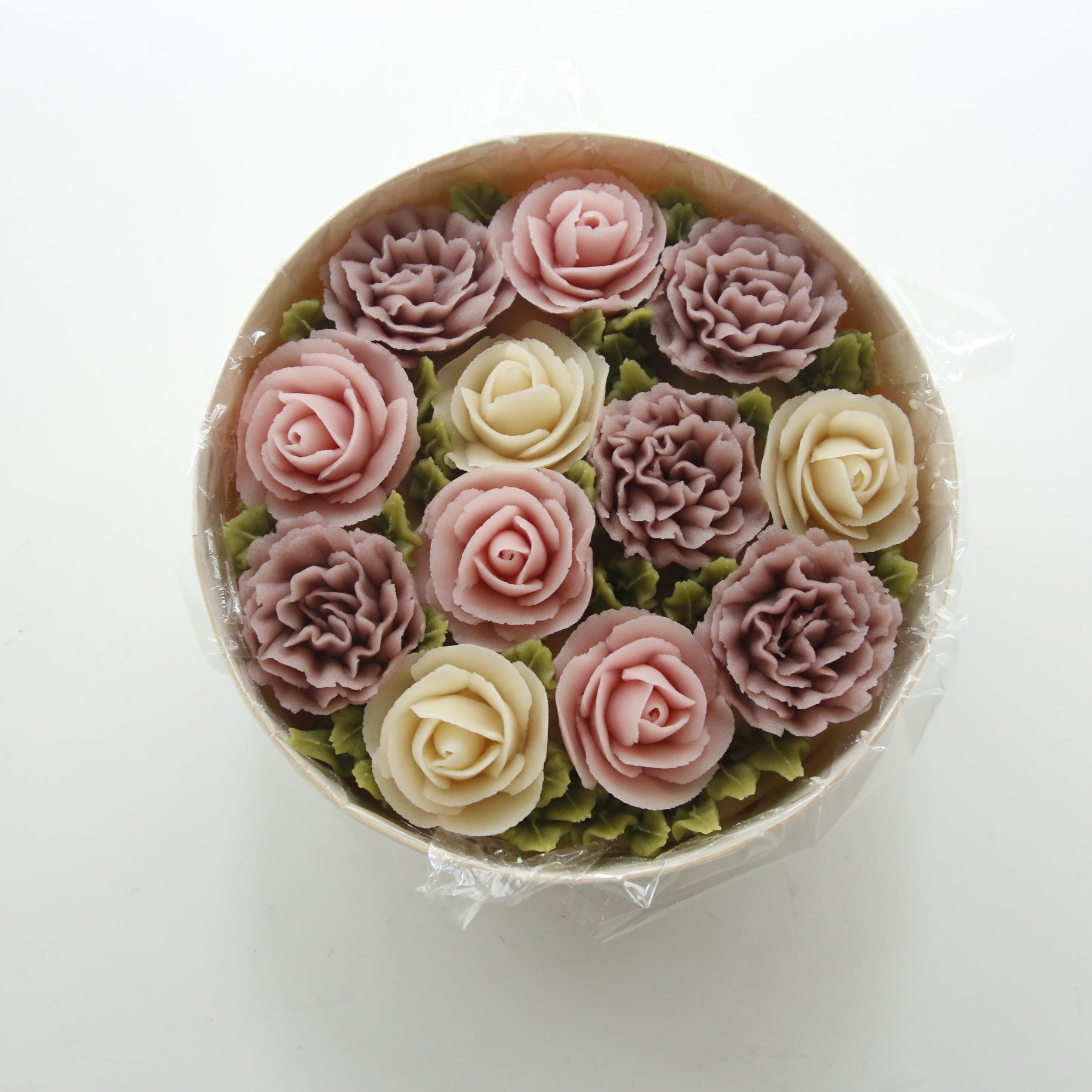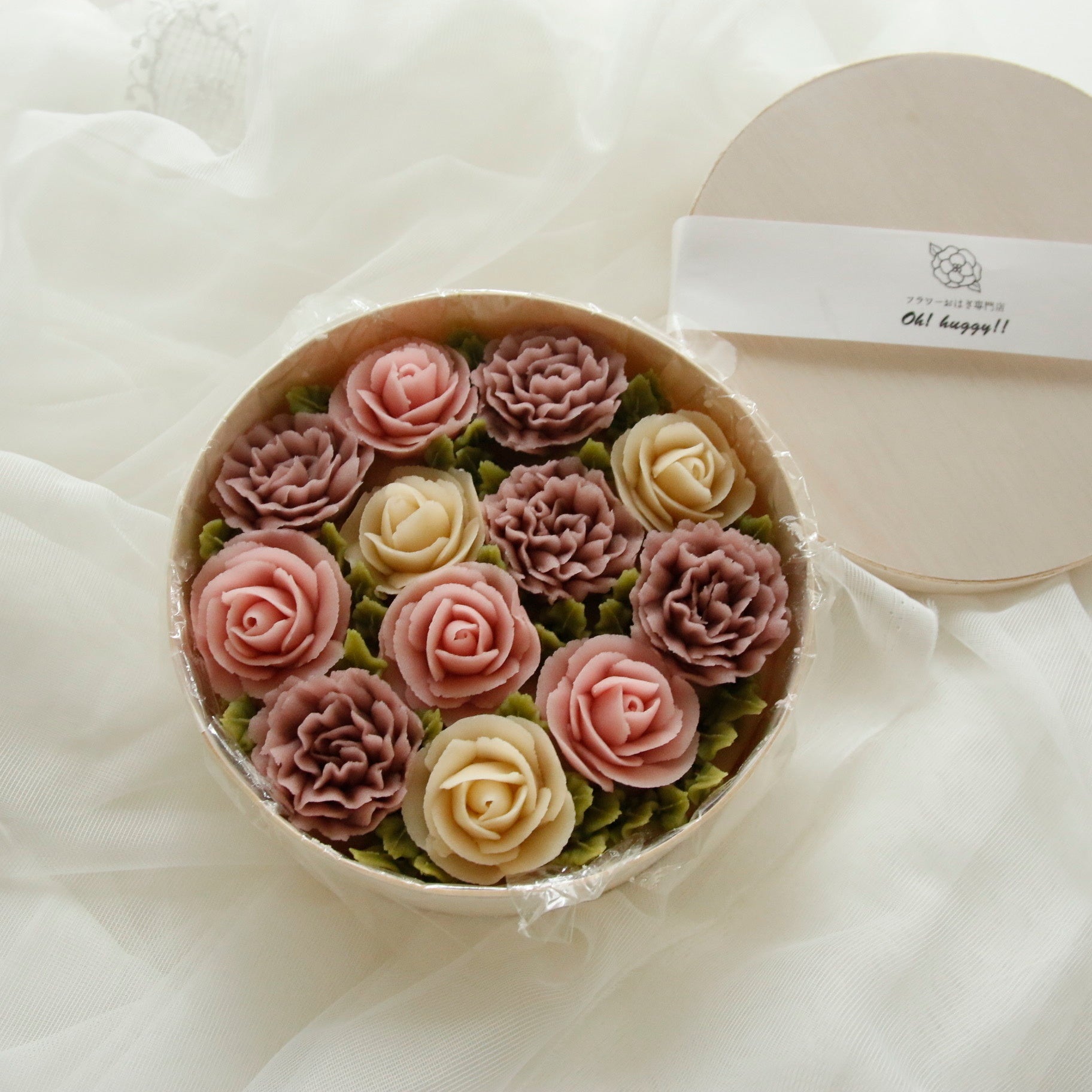 内容 :フラワーおはぎ(薔薇・カーネーション/白こし餡・抹茶餡)