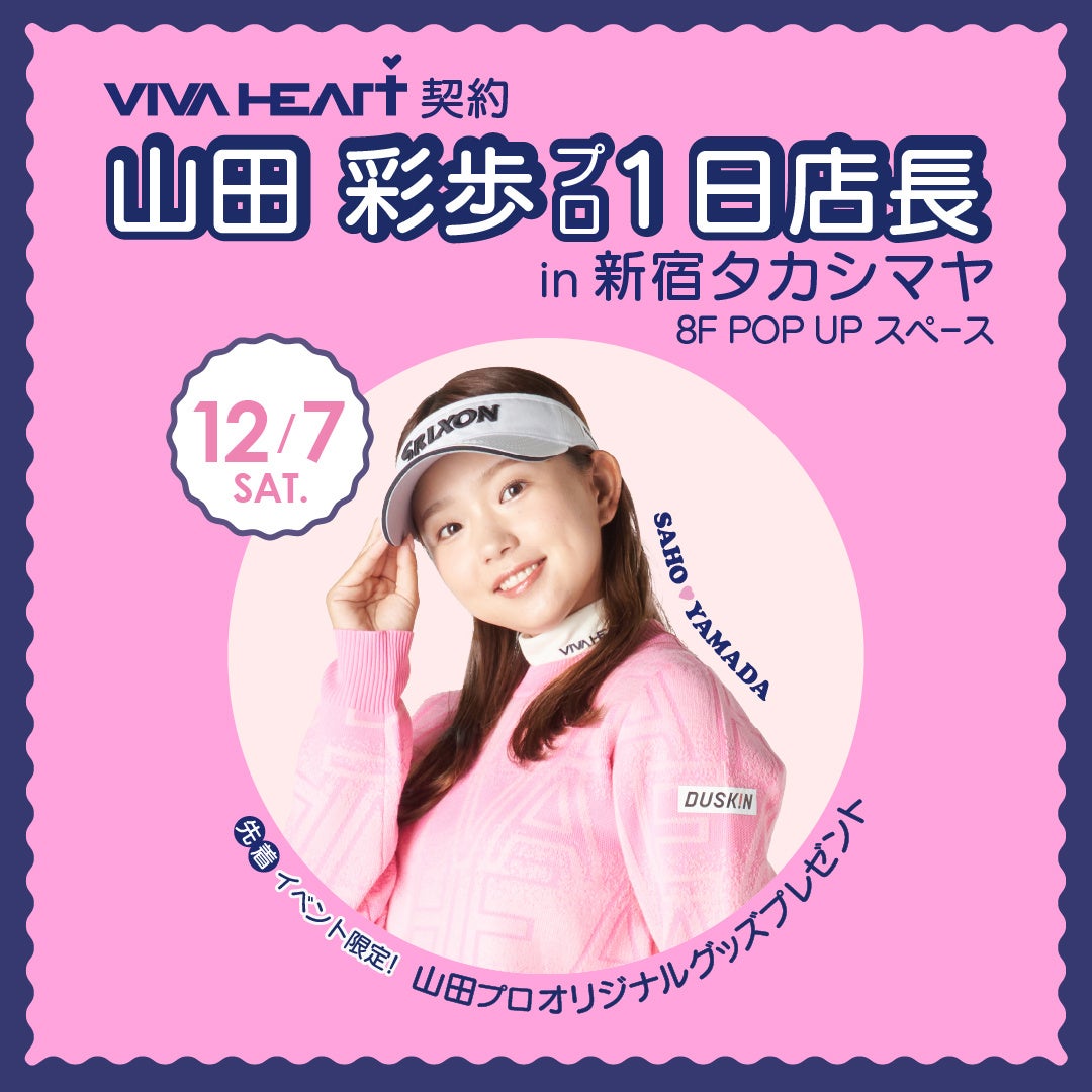 株式会社グリップインターナショナル(本社:神戸市、代表取締役会長兼社長 桑田 隆晴)のオリジナルゴルフウェアブランド「VIVA HEART / ビバハート」は、2024年12月4日(水)~12月17日(火)の期間限定で新宿タカシマヤにてPUP UP SHOPをオープンいたします。期間中の12月7日(土)は、VIVA HEART ウェア契約プロゴルファー 山田彩歩プロの来店イベントも開催いたします。