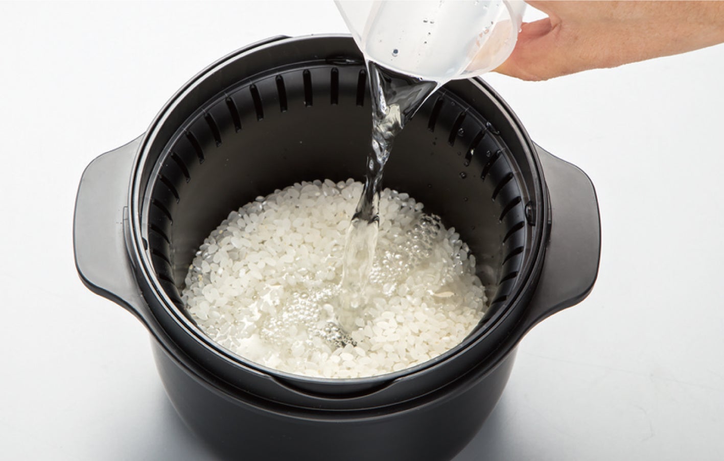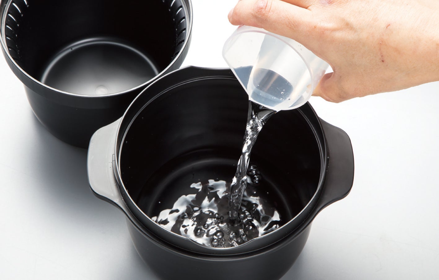 2. 分量の水を入れ、約15分置いて吸水を行います。