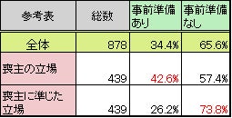 ※参考までに喪主の立場の方と喪主に準じた立場の方で区分してみると、喪主の立場の方の事前準備比率