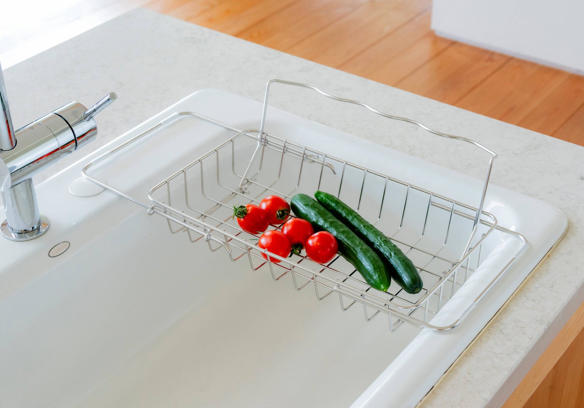 また、食器類の乾燥はもちろん、野菜を洗った後の水切りにも活躍。シンク上で効率よく水を切れるため、調理の流れもスムーズに。