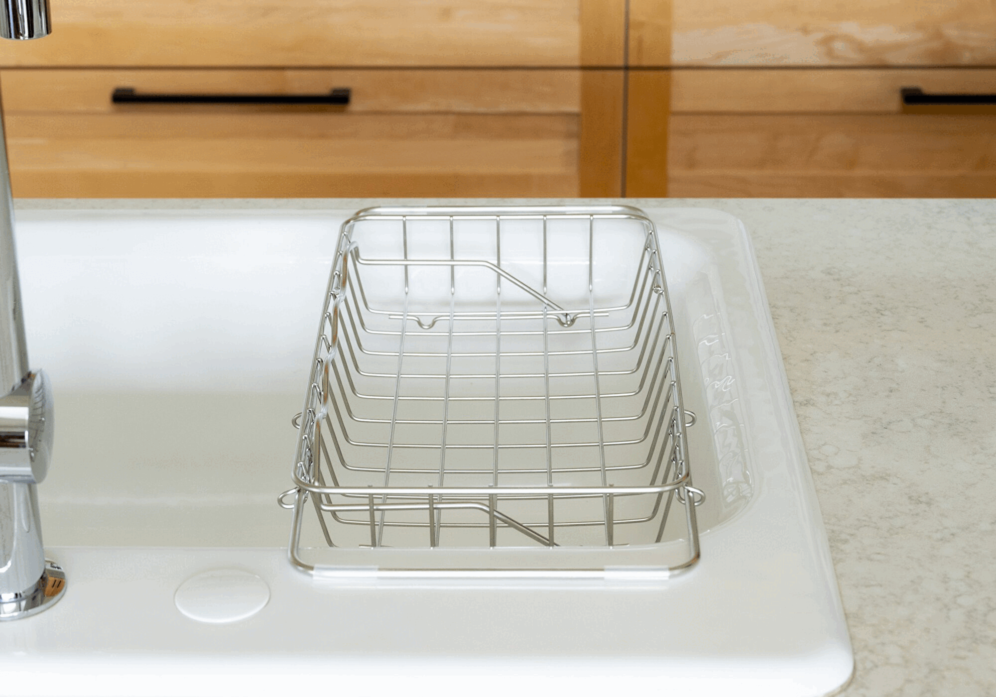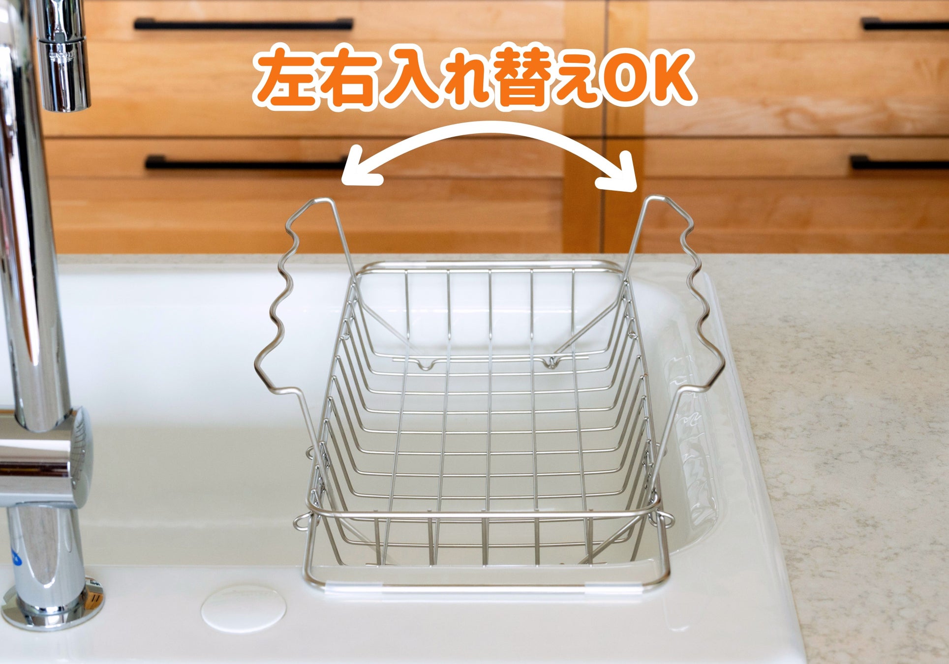 他の活用方法として、かご底には脚が付いており、シンク横にも設置可能。吸水タオルやマットを敷いて使えば、食器が直接触れず、衛生的に乾かせます。シンクの掃除時などにも移動したまま水切りできるため、置き方の自由度が高く、使い方に合わせて柔軟に対応できます。