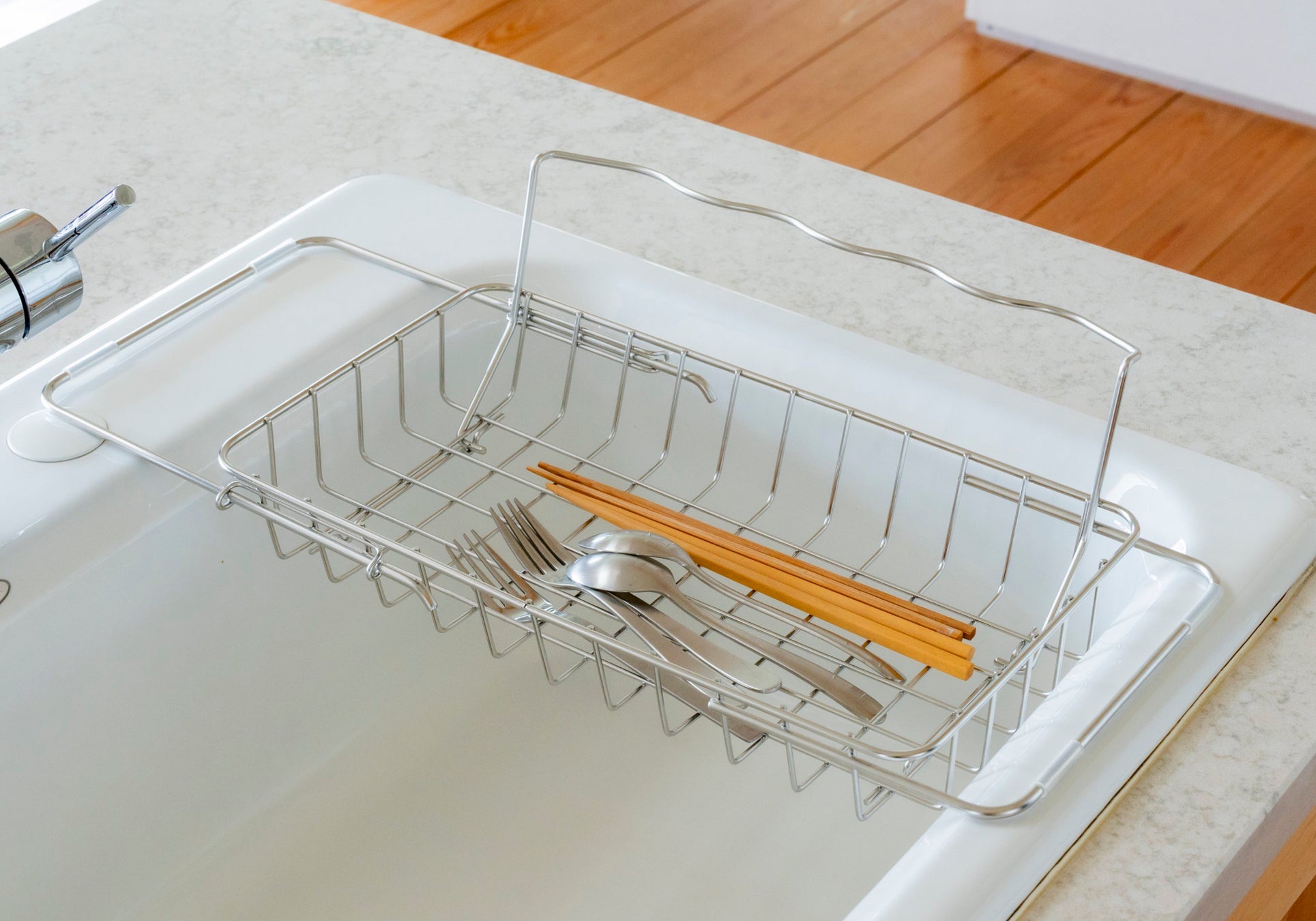 [新発売]サッと広げて、水筒もお皿もすっきり乾かす。シンクを有効活用する畳める水切りかご
