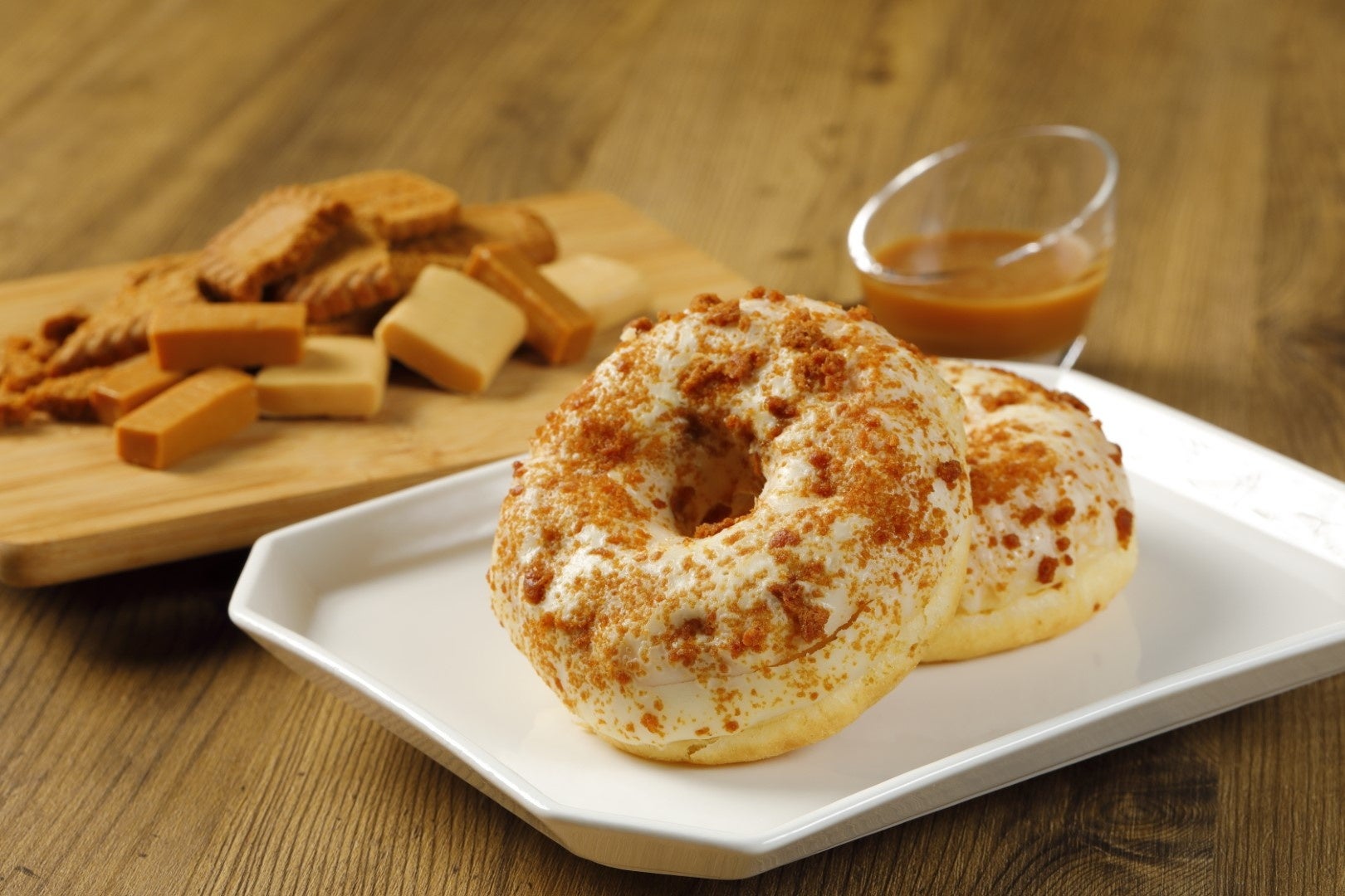 ふんわり柔らかな生地に、香ばしいキャラメルとほんのり香るシナモン風味のビスケットを合わせた、贅沢な味わいのドーナツです。