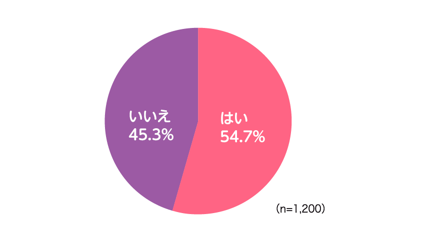 今回、全国の中学・高校生1,200人を対象に花粉症の状況を調べたところ、自身の花粉症の発症有無に関しては、「はい(花粉症である)」(54.7%)という回答が半数を超え、中高生の2人1人が花粉症を発症しているようです。