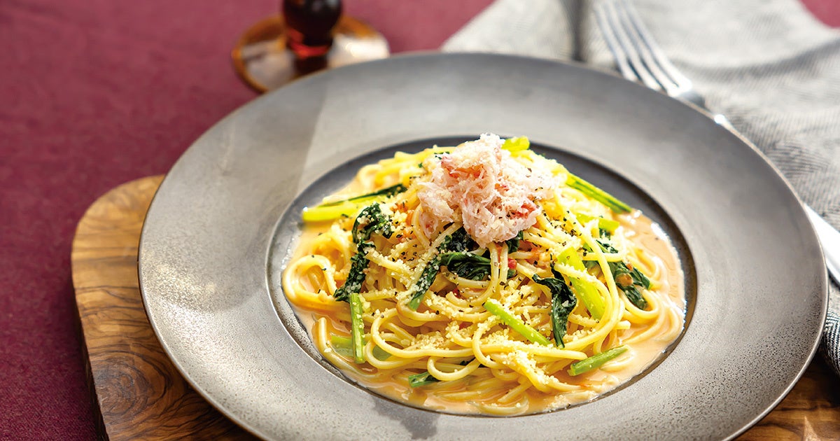 芳醇な香りが特徴な紅ずわい蟹を使用した贅沢な季節限定パスタが登場!
