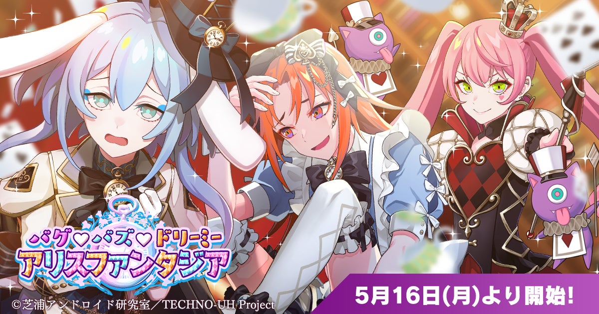 株式会社サイバーエージェント(本社:東京都渋谷区、代表取締役:藤田晋、東証プライム市場:証券コード4751)は、上松範康×RUCCA×Elements Gardenが原案を担当するアニメとゲームと音楽を連動させた新世代メディアミックスプロジェクト『テクノロイド』のスマホゲーム『テクノロイド ユニゾンハート』にて、5月16日(月)よりゲーム内イベント「バグ♡バズ♡ドリーミー アリスファンタジア」を開催いたします。