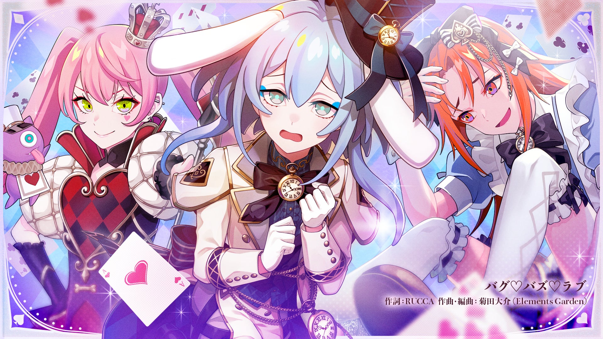 スマホゲーム『テクノロイド ユニゾンハート』にてゲーム内イベント「バグ♡バズ♡ドリーミー アリスファンタジア」に合わせ、『テクノロイド』内ユニット「フランキー♡ノット」(フラン(CV:小林大紀)、ハイド(CV:重松千晴)、リム(CV:草野太一))による新曲、「バグ♡バズ♡ラブ」を解禁いたします。また、同日公式YouTubeにて各楽曲のShort ver.も公開します。