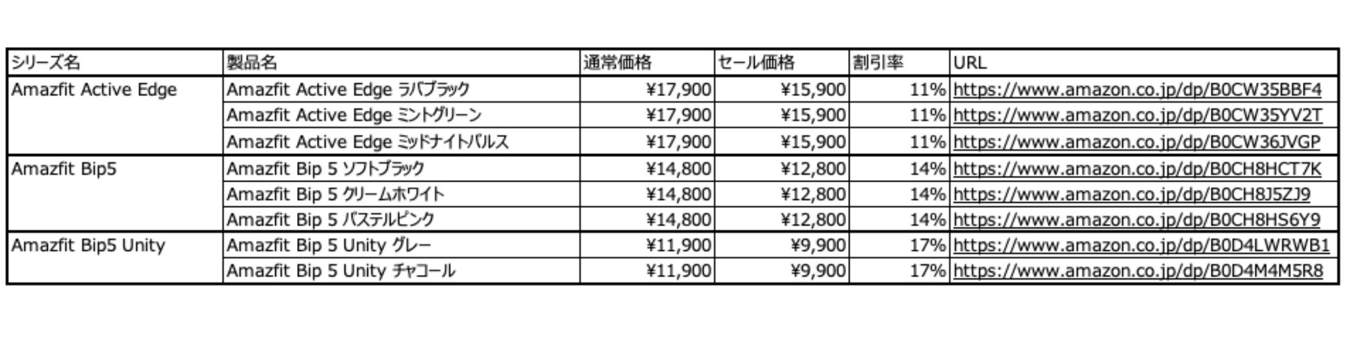 Amazfit 期間限定セール 対象製品(〜10月31日まで)