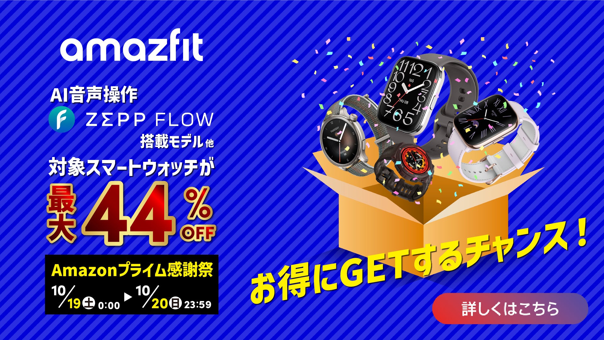 スマートウェアラブル市場をリードするグローバル企業であるZepp Health Corporationは、2024年10月19日(土)0:00から10月20日(日)23:59まで開催されるAmazon「プライム感謝祭」において、Amazfitの人気の合計11製品を出品いたします。高機能と高い評価をいただいている、OpenAI社「GPT4.o」搭載「Amazfit Balance」を初めて3万円を切った価格で出品いたします。その他、最大44%オフの製品も登場します。