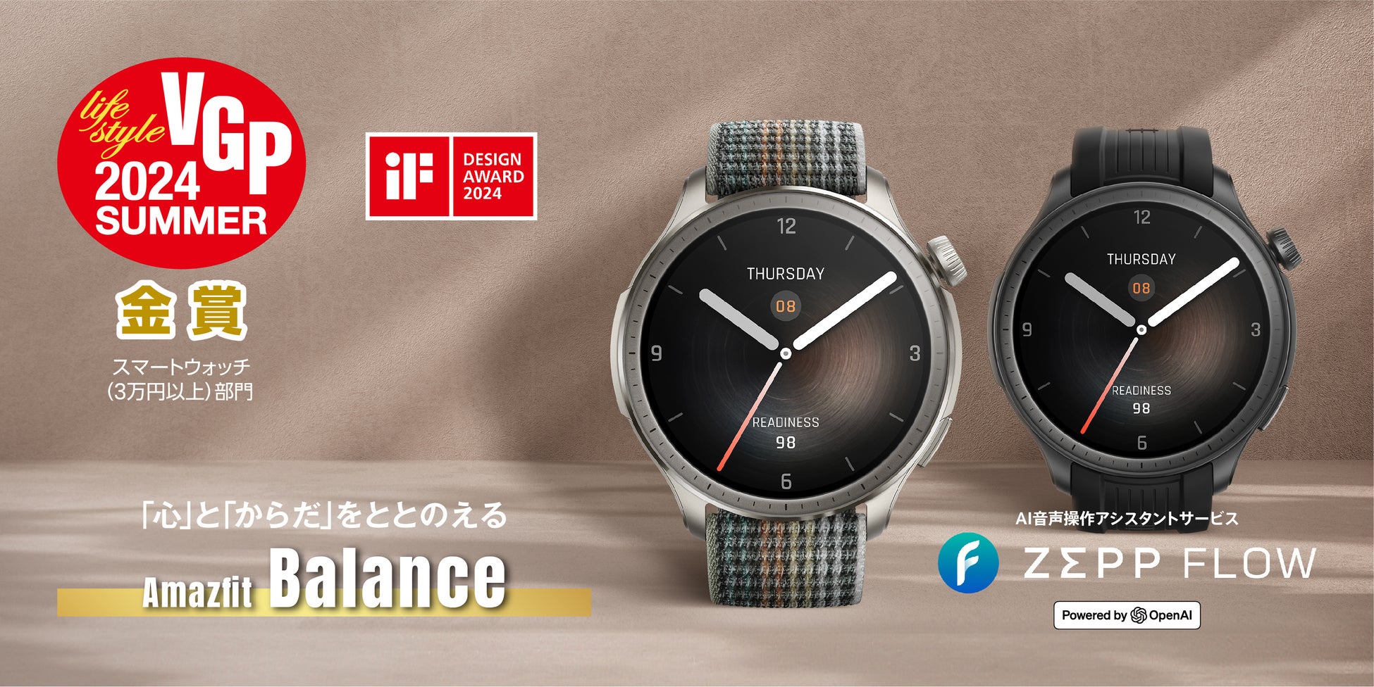 Amazfit、2024年秋Amazonプライム感謝祭で最大44%オフ! OpenAI社「GPT4.o」搭載の大人気Amazfit Balanceが初めて3万円を切って登場!