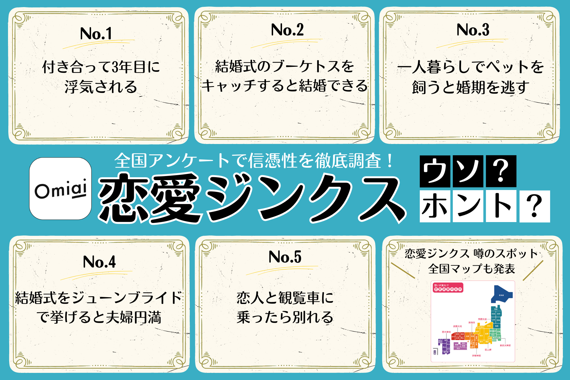 Omiai Report light 『恋愛ジンクス ウソ?ホント?』恋愛ジンクスの信憑性を徹底調査!全国一斉アンケートを実施!