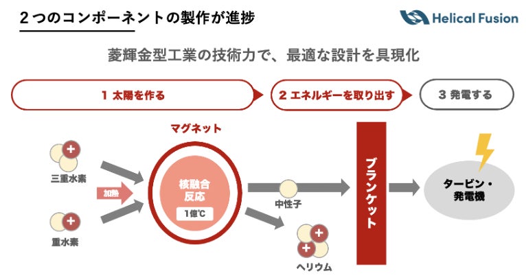 世界初のフュージョンエネルギーによる「実用発電」を目指し、ヘリカル型核融合炉の開発を進める株式会社 Helical Fusion(本社:東京都中央区、代表取締役 CEO:田口 昂哉、以下「Helical Fusion」)は、航空・宇宙分野などの大型の金属精密加工において技術力と実績を有する菱輝金型工業株式会社(本社:愛知県一宮市、代表取締役:原 康裕、以下「菱輝金型工業」)との事業連携により、最終実証装置「Helix HARUKA」向けのコンポーネント製作の一部を完了しました。