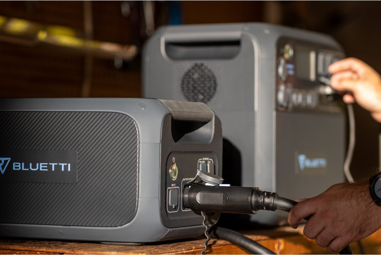 AC200Pは800W のデュアル AC 充電をサポートしています。また、 T400やT500 アダプタといった安価なオプションを使用することで、ACコンセント とソーラーを併用して最大 1,100W のデュアル充電が可能です。AC200P と折り畳み式ソーラーパネルの BLUETTI PV200 または PV350 を併用すれば、外出先でも 700W の太陽電池を利用できます。D050S 充電器をお持ちの場合は、さらに500W の電力が追加され、合計で最大 1,200W の太陽光充電を実現。太陽光から真の電力自給が可能になります。