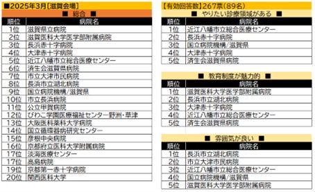 【滋賀会場】での総合順位は4位までが滋賀県の国公立・公的病院となった。「やりたい診療領域がある」で首位の、近江八幡市立総合センターは、すべての項目でランクインしている