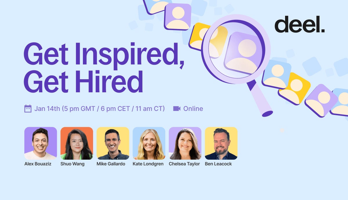 「Get Inspired, Get Hired」 は現在すべてのグローバル人材を対象に登録受付中です。詳細およびご登録については、https://www.deel.com/events/get-inspired-get-hired/をご覧ください。