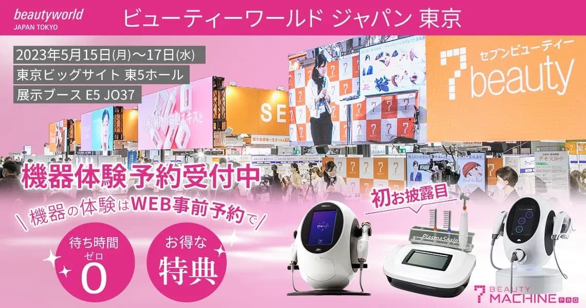 セブンビューティーは「ビューティーワールドジャパン東京2023」にて、業務用エステ機器の無料体験を実施。WEBでの事前予約でお得な特典もご用意しています。