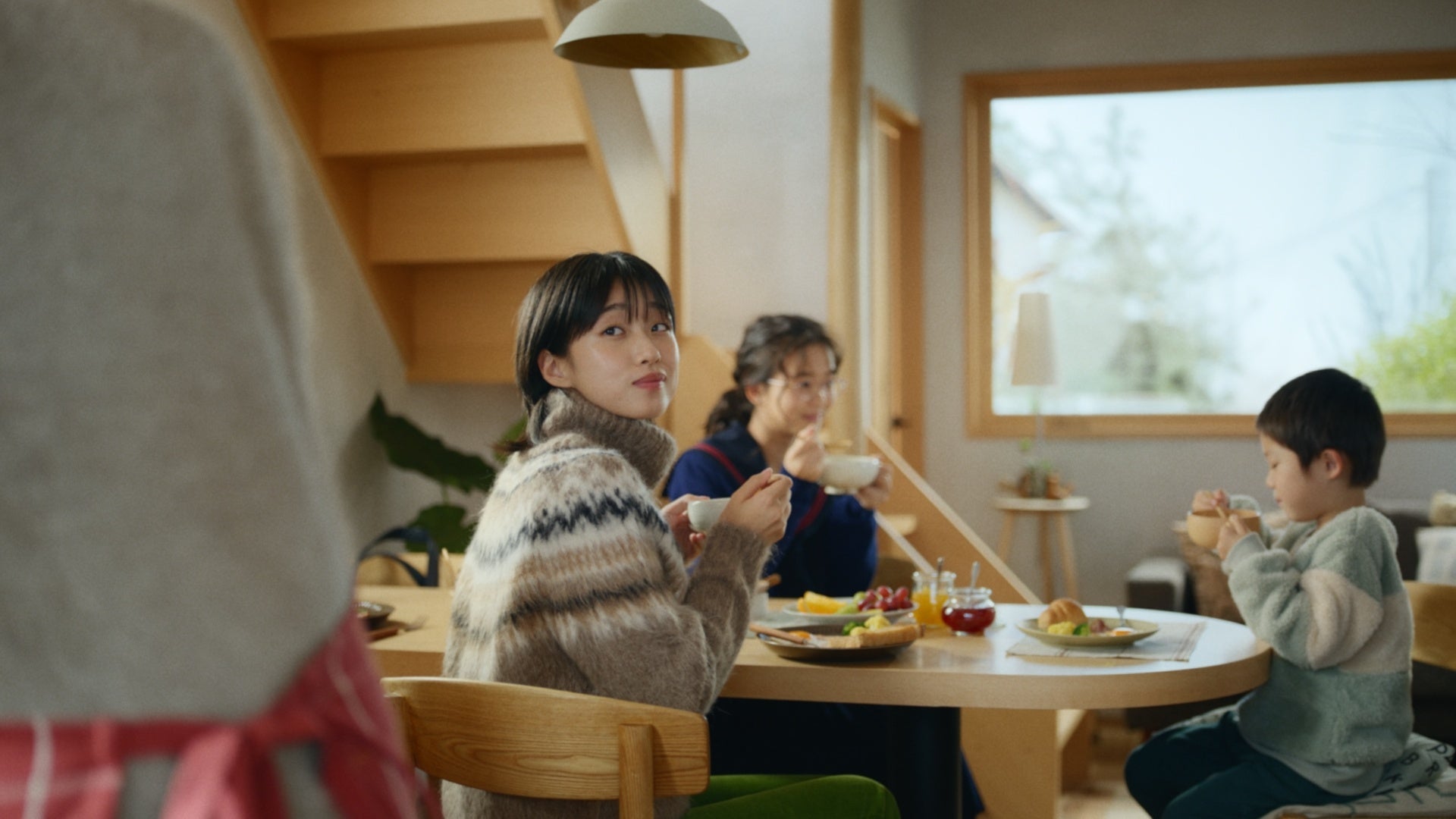 近年はライフスタイルの変化などにより、家族で一緒に食事をするのが難しくなってきています。家族みんなで楽しめる「クノール® カップスープ」を通じて、食事の場でのコミュニケーション機会創出に貢献したいと考え、CMでは3兄弟の長女を演じる河合優実さんが多様なシーンで家族と一緒に3品種を味わう様子を描きました。