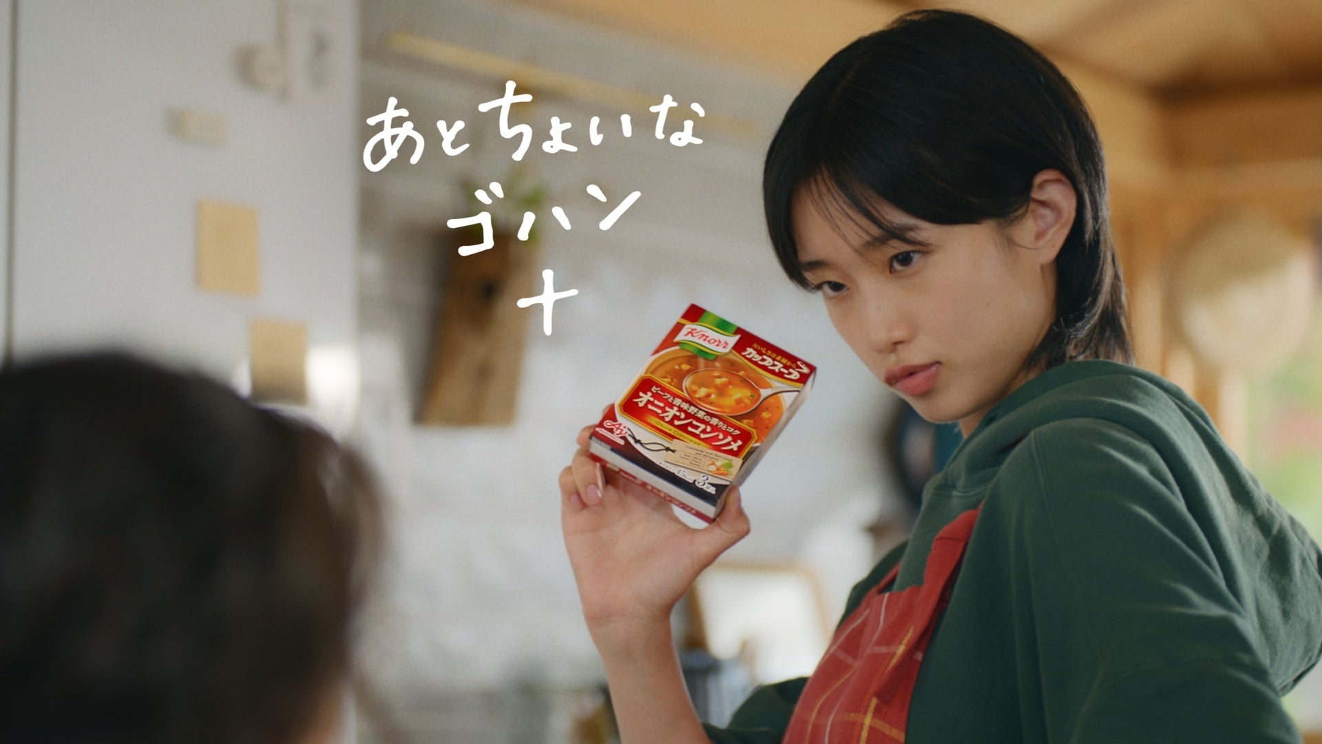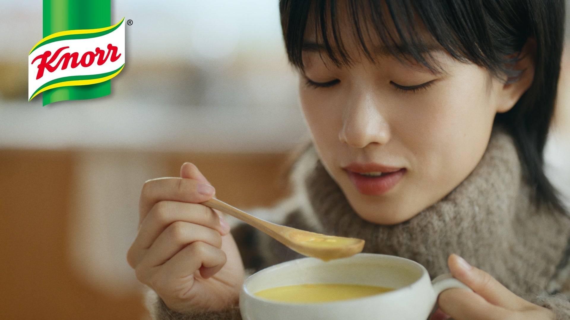 5年ぶりのCMキャラクターリニューアル!「クノール® カップスープ」CMに俳優の河合優実さんが初出演!コーン、ポタージュ、オニオンコンソメの異なる価値が様々なシーンで家族の会話のきっかけに。