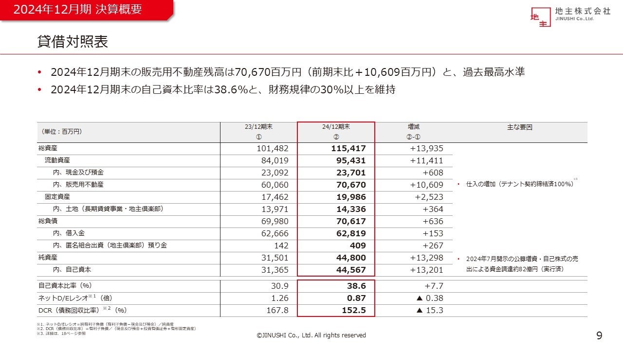 貸借対照表については、仕入の増加により販売用不動産残高が70,670百万円(前期末比+10,609百万円)と、過去最高水準となりました。