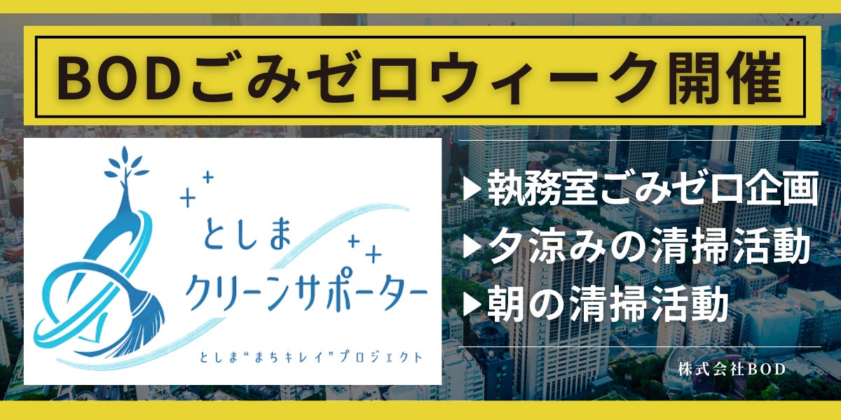 株式会社BOD(東京都豊島区、代表取締役:田中大善)は、豊島区役所が開催している「ごみゼロウィーク」に賛同し、9月24日と9月25日に「BODごみゼロウィーク企画」を実施しました。