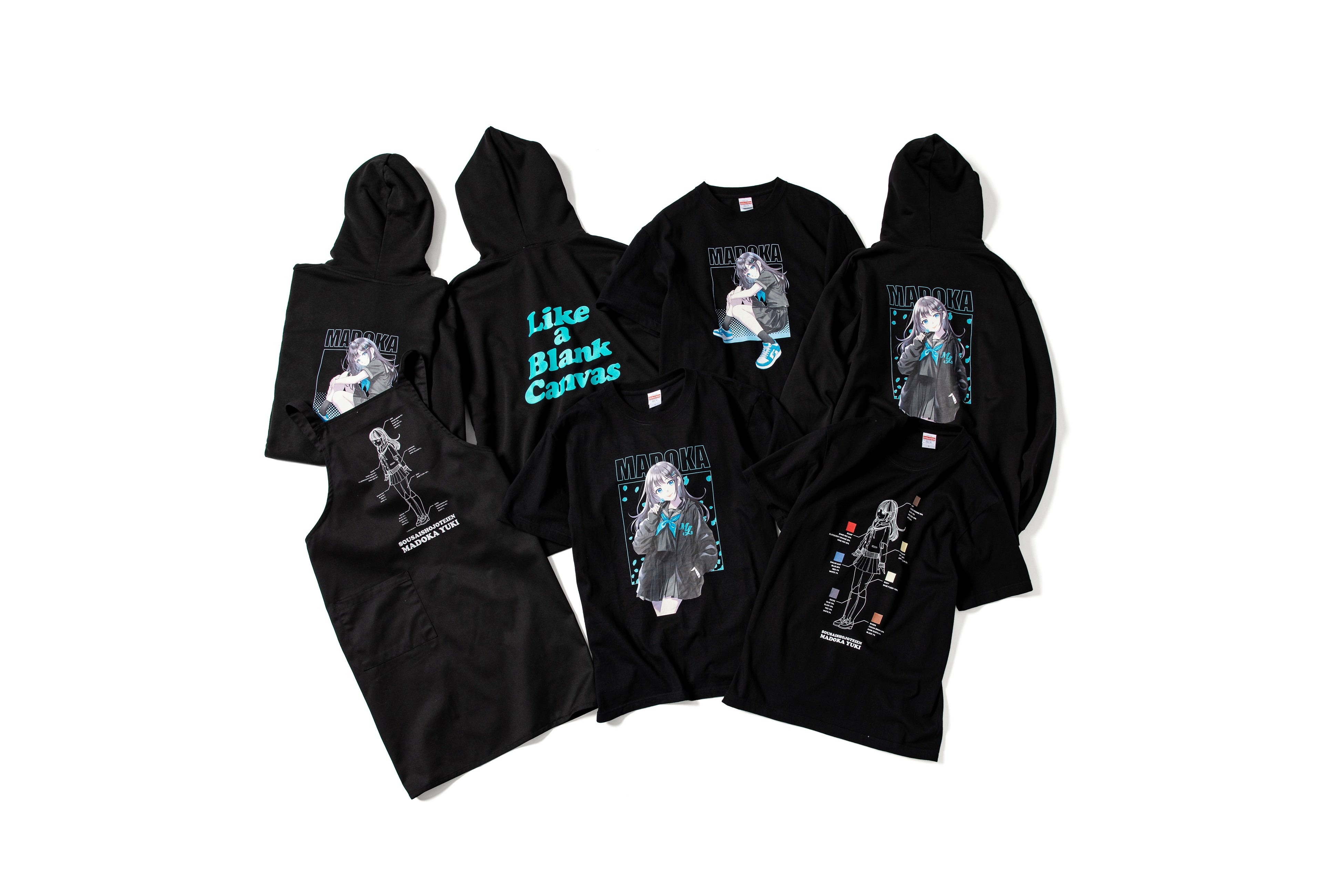 イラストレーター森倉円氏の描き下ろしイラストをコラボビジュアルに使用し、限定仕様のプラモデルをはじめ、キャラクター「結城まどか」とのリンクコーデを楽しめるフルジップパーカーや、プラモデルの組立説明図をサンプリングしたTシャツやエプロンなど、プラモデルコンテンツである創彩少女庭園ならではのアイテムに仕上がっています。
